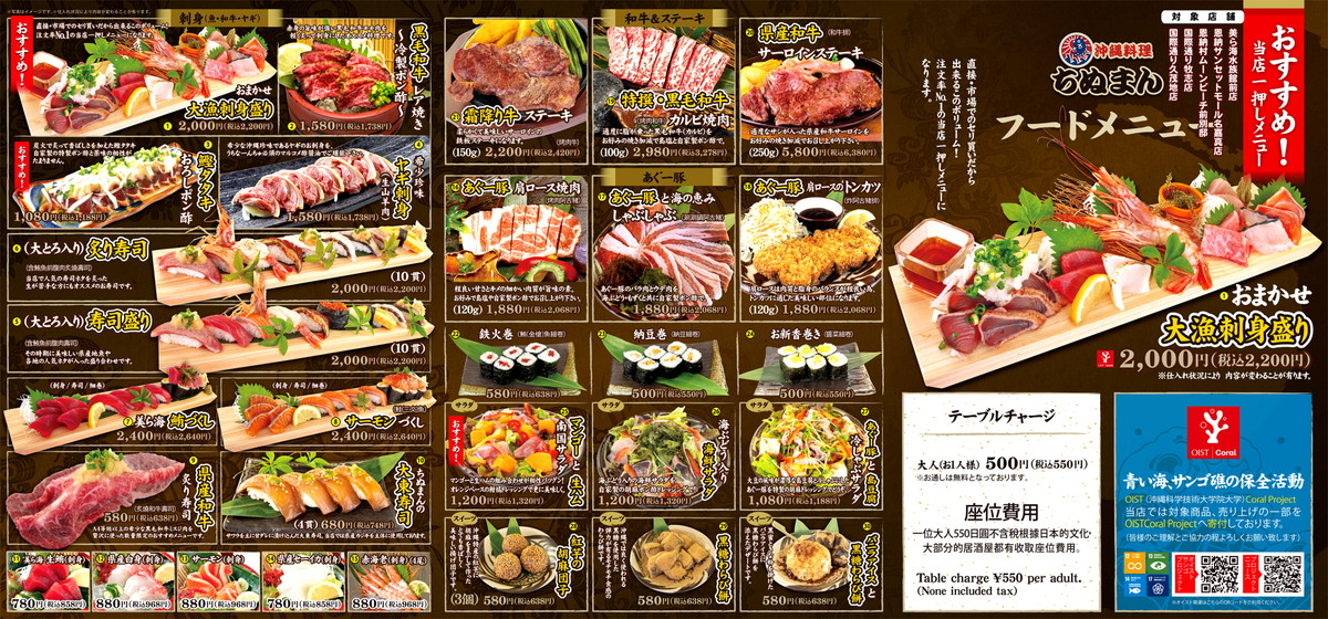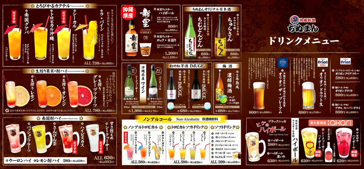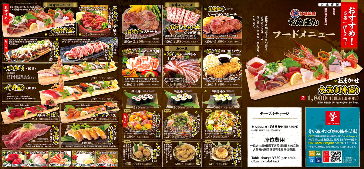 居酒屋ちぬまんは那覇市、恩納村、本部町に店舗があります。