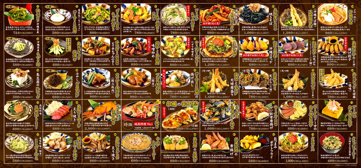 本格的な沖縄料理から地魚を使った海鮮料理、県産ブランド「あぐー豚」を使った料理、