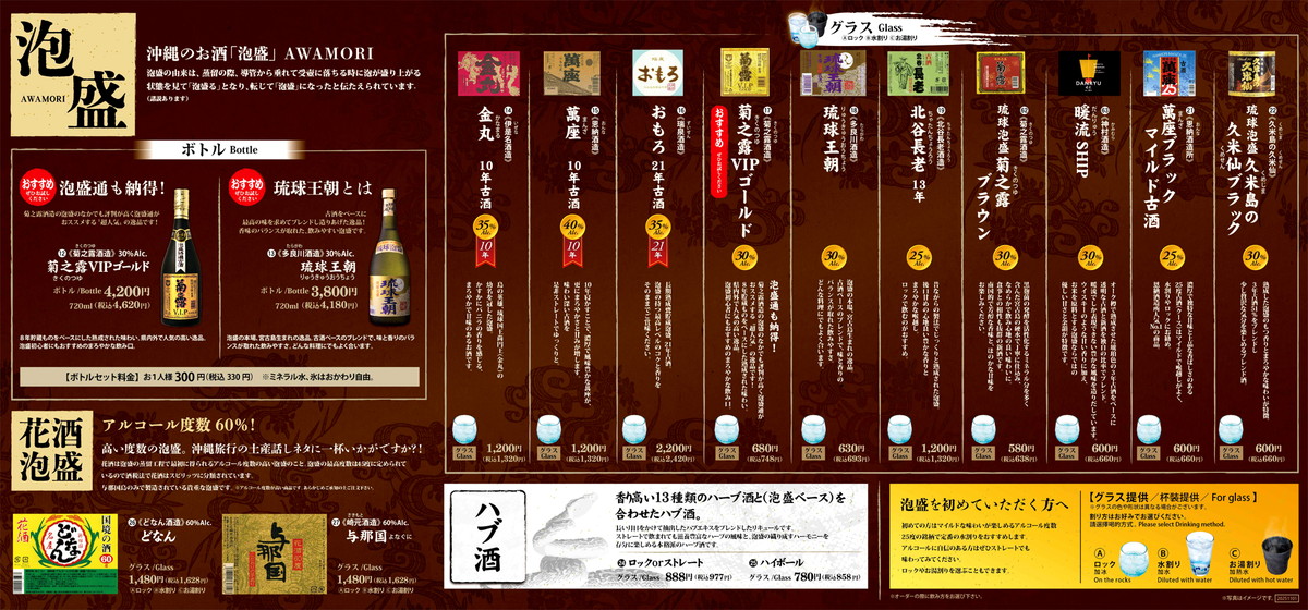 全席禁煙だからお子様連れのお客様にも安心!座敷席もご用意しています。子連れOK。泡盛の種類に自信あり!恩納村で夜ごはん、夕食、ディナー。